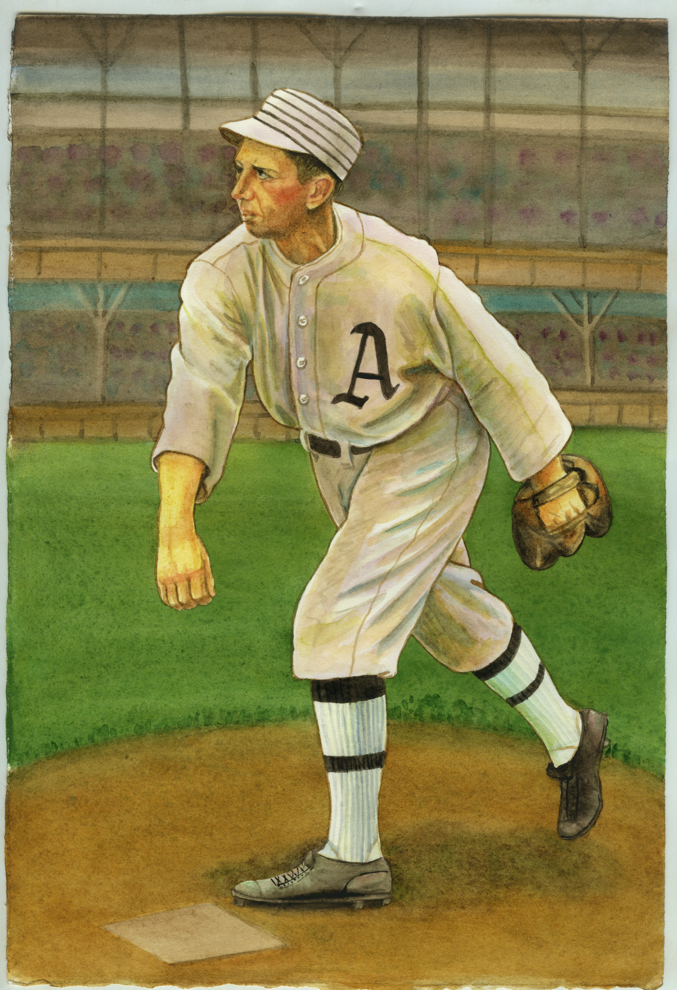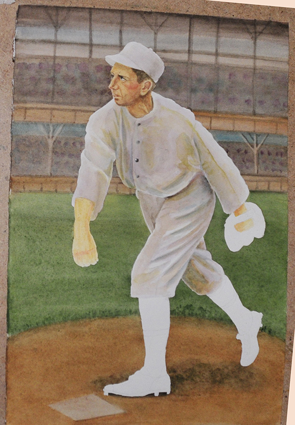 I’ve finally decided that it is time for us to take a shot at our own version of the iconic series. After months of discussion we’ve started to work on our first paintings. Here’s an advance view of our Eddie Collins card as of a couple days ago.