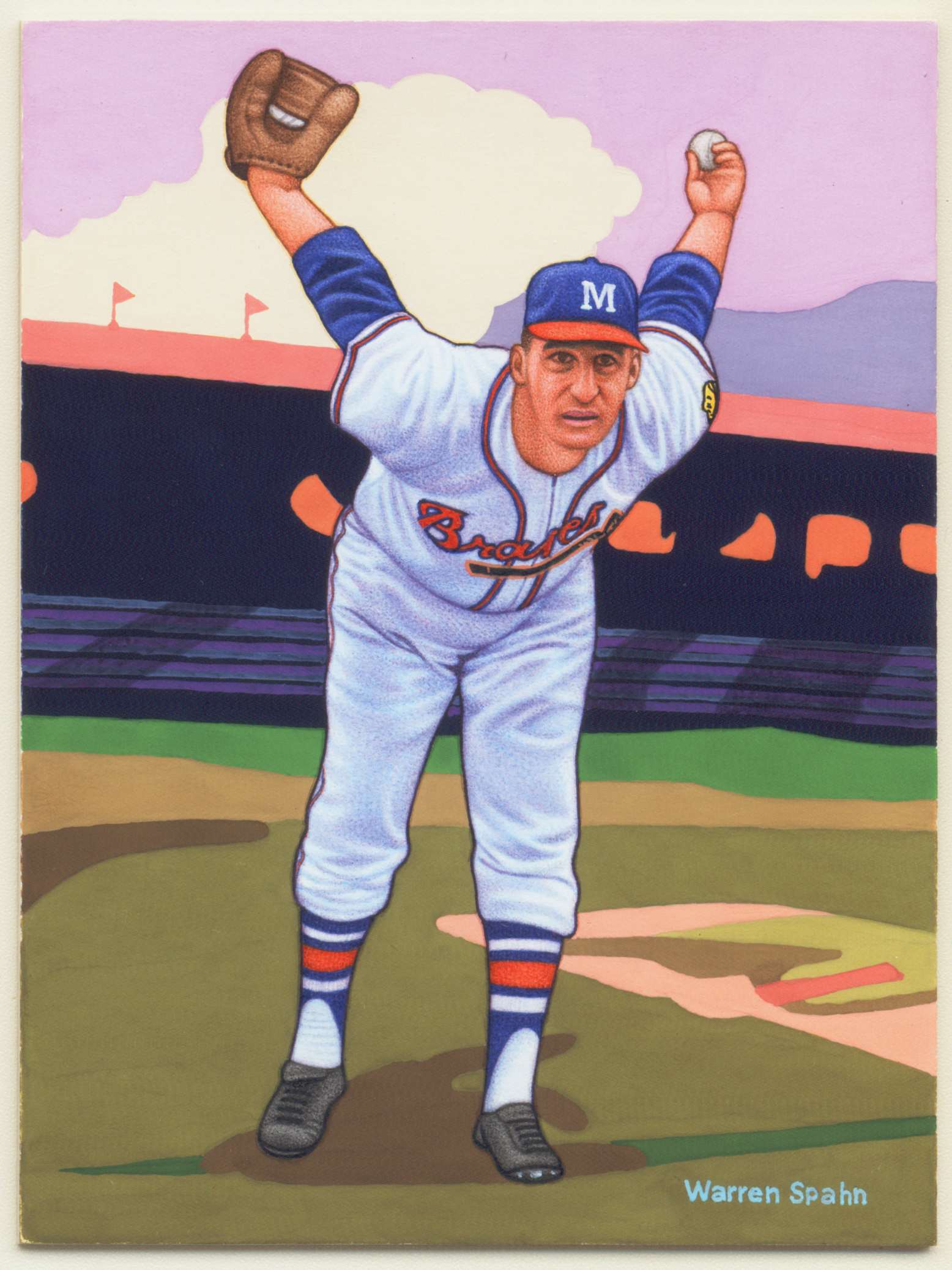Posted on March 21, 2019March 10, 2019 by Charles Mandel 363. That’s all you need to remember. Warren Spahn, 363 victories. I don’t think that he lost any. Gouache, 3″ x 4″. Visit our website here. And don’t forget our Tuesday night auctions here! Share this: Click to share on X (Opens in new window) X Click to share on Facebook (Opens in new window) Facebook Like Loading... Related