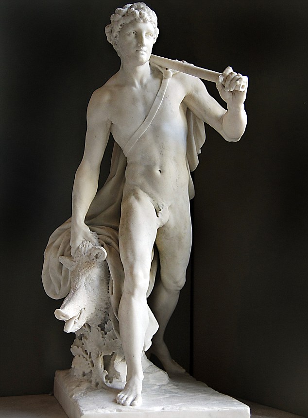 Here’s the image that inspired the painting. It’s a natural pose for a ballplayer, though I replaced the boar with something more appropriate.
