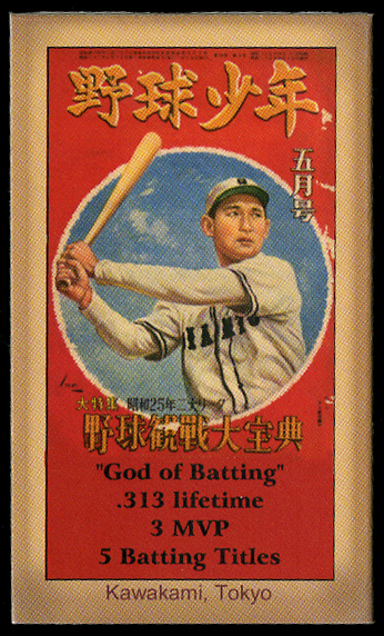 Known in his home country as “The God of Batting,” Tetsuharu Kawakami won five batting titles and was one of the most famous players in Japanase baseball. A master at making contact and known for his red bat, Kawakami once struck out only six times in a full season.